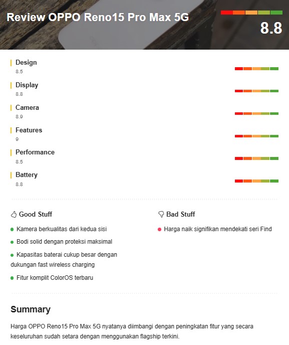 Memang tidak bisa dimungkiri bahwa label harga OPPO Reno15 Pro Max 5G kini telah menembus segmen flagship yang cukup kompetitif. Meski harganya bukan yang paling ekonomis di kelasnya, bagi Anda yang mengutamakan kualitas dan deretan fitur unggulan yang ditawarkan, ponsel ini tetap menjadi investasi yang sangat layak. Jika spesifikasinya sudah sesuai dengan kebutuhan harian Anda, meminang perangkat ini adalah keputusan yang tepat. Simak ulasan mendalamnya di bawah ini.